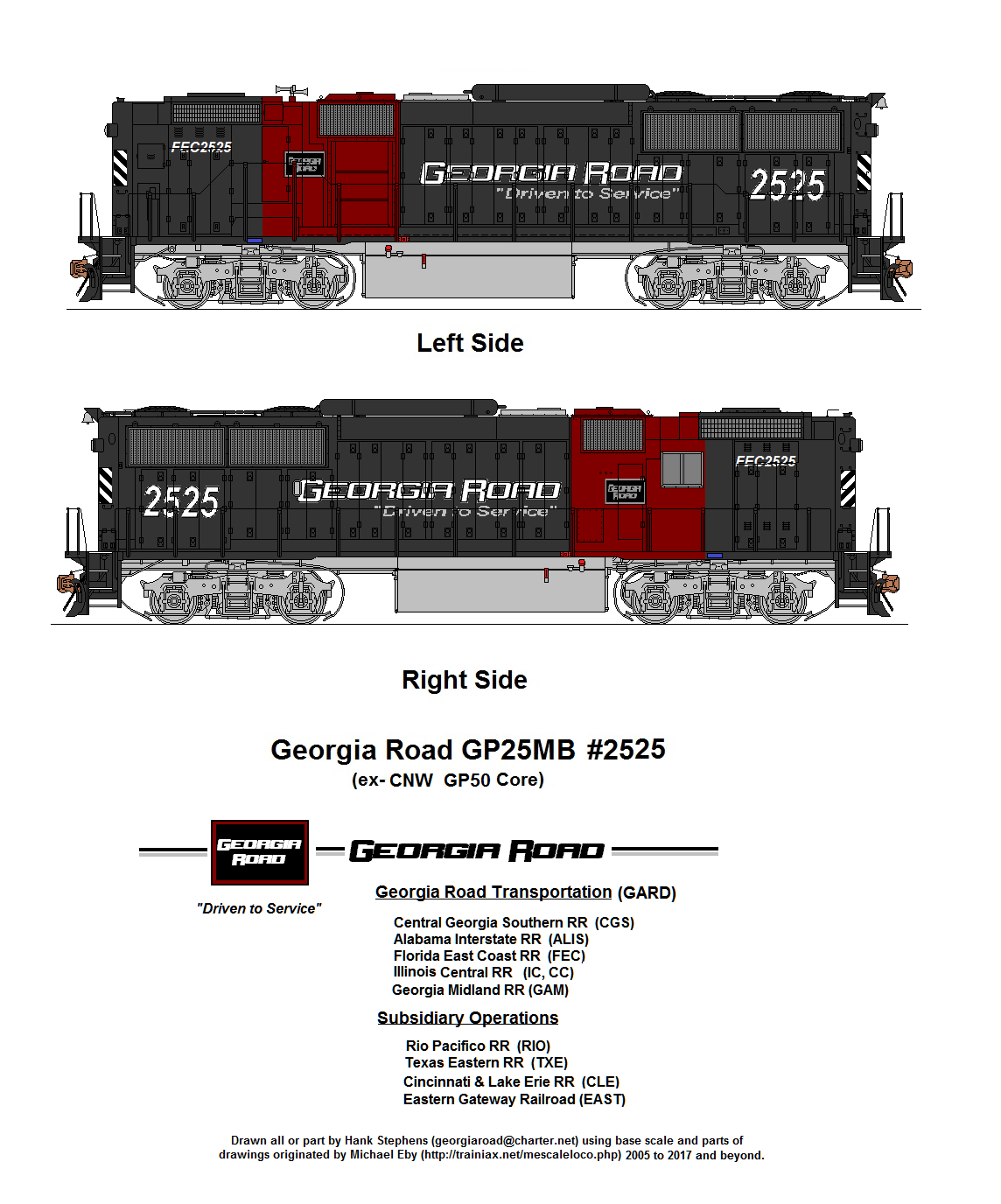 Stephens Railcar is notable in its TGX Program of third and fourth generation rebuilds designed to meet increasingly stringent EPA emissions requirements. After several months of study and evaluation of Georgia Road roster needs, Stephens Railcar presented the railroad with the 25M Rebuild Program in early 2002 The specification called for a turbocharged medium horsepower road switcher that would be equally adept at moving fast intermodal trains or working road switching assignments over the combined Georgia Road system. These rebuilder new medium horsepower units would utilize a GP30, GP35, GP38 and, GP40R core units pulled from Georgia Road ranks. To prevent a severe shortage of power as Stephens Railcar pulled from the active roster, it would also rebuild from its own stocks of GP40 and GP50 cores originally acquired for the TGX Program. The specifications for the new design would be built around an OEM EMD 12cylinder turbocharged 645 primemover, have a modern clean cab with minimum 26L braking, new D77 traction motors on fully remanufactured trucks, new electrical cabinets, wiring and third generation microprocessor control system. Former Southern GP30, GP35 and GP35 units would be configured as booster units with hostler controls, allowing utilization of the high short hood and reduce costs. The initial order was for 30 cab equipped GP25M units with an additional GP25B units.
