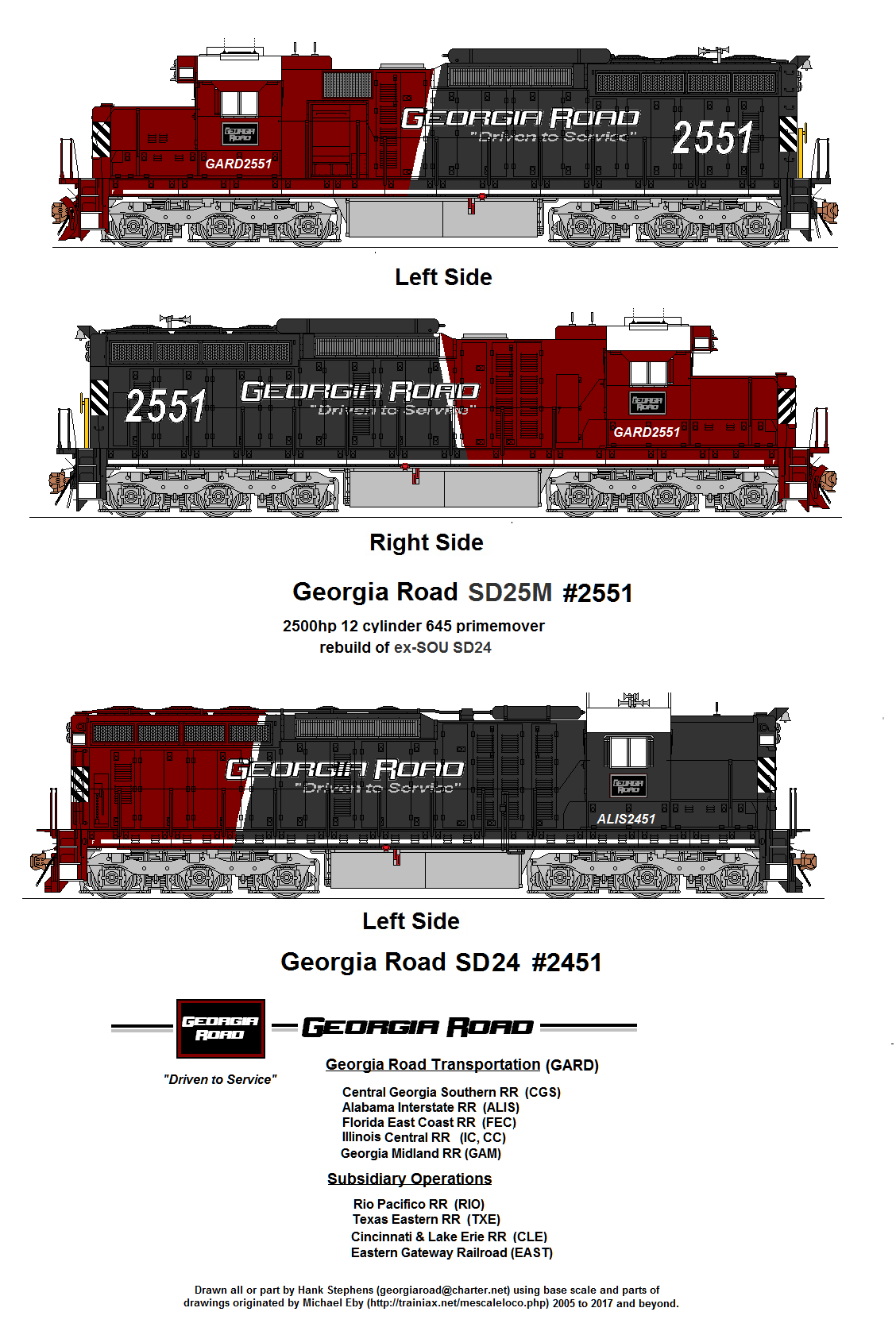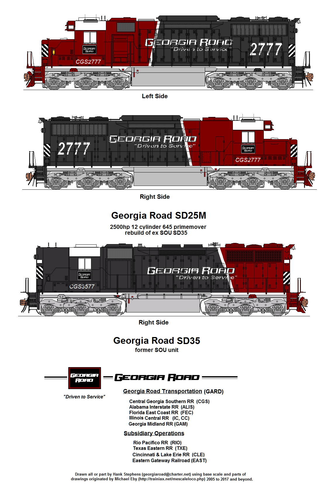 The 25M program was commissioned by Georgia Road in the early 2000s to create a group of general yard, transfer and road switching power from its large roster of ex SOU SD24 and SD35 locomotives. Georgia Road was the recreation of the bankrupt Central, Alabama & Southern Railroad (CA&S) of the 1980s. CA&S was a spin-off of the newly organized NW-SOU merger into Norfolk Southern similar to a Deep South version of the Wheeling & Lake Erie spin-off. The CA&S contained much of the old CofGA trackage, much of which was downgraded in the late 1970s and 1980s after Southern swallowed its competitor Central of Georgia. CA&S would add ex GM&O lines to the west and cast-off branches in South Carolina to create its system. CA&S came into being during the rise of intermodal and managed to capitalize on that fact and build a profitable business. The backbone of its fleet was dozens of SD9, SD24, SD35, SD40 and SD45 units, many pulled from the deadlines of the new NS as it modernized its fleet with late second and third generation power.