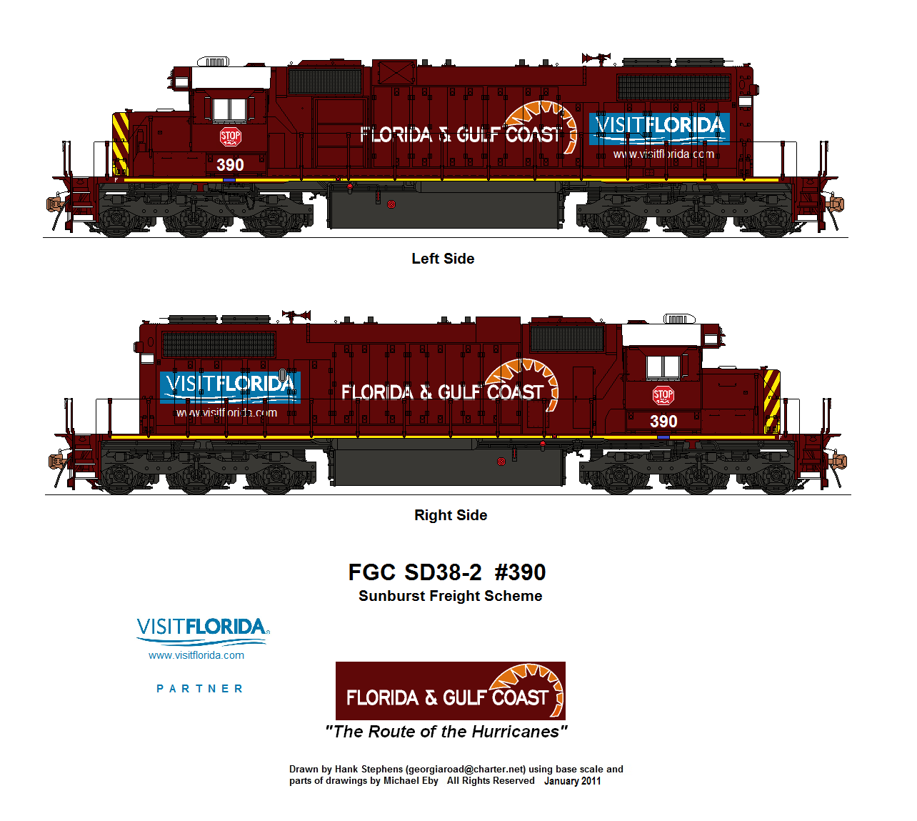 Florida & Gulf Industries (FGI) was not a stranger to 2000hp 38 series as its Alabama Florida & Gulf RR (AFG) purchased several SD38 and SD38-2 units over the years to work the AFG during the early 2008s. With the purchase of FGC from MDRail, several SD38 and SD38-2 units were permanently transferred to the FGC to cover vacancies left as MDRail sent its MDRail leased power home to the MDRail permanently. These units were used in mixed service, holding down classification duties at Tampa, Tallahassee, and Pensacola, where principal switching yard terminals were located. Others freely roamed the FGC Cross Florida Division where they worked assembling or sorting RockTrain aggregate moves between Birmingham, AL and sand pits in the panhandle region of Florida. In an obvious indication of the satisfaction of the model and its service on the FGC, FGI purchased the complete LLPX fleet of SD38-2 ex Reserve Mining units in 2019. These units were equipped with dynamic braking and were assigned to Rock Train service, replacing non dynamic brake equipped sibling that moved to full time yard and local service in the 2020s.