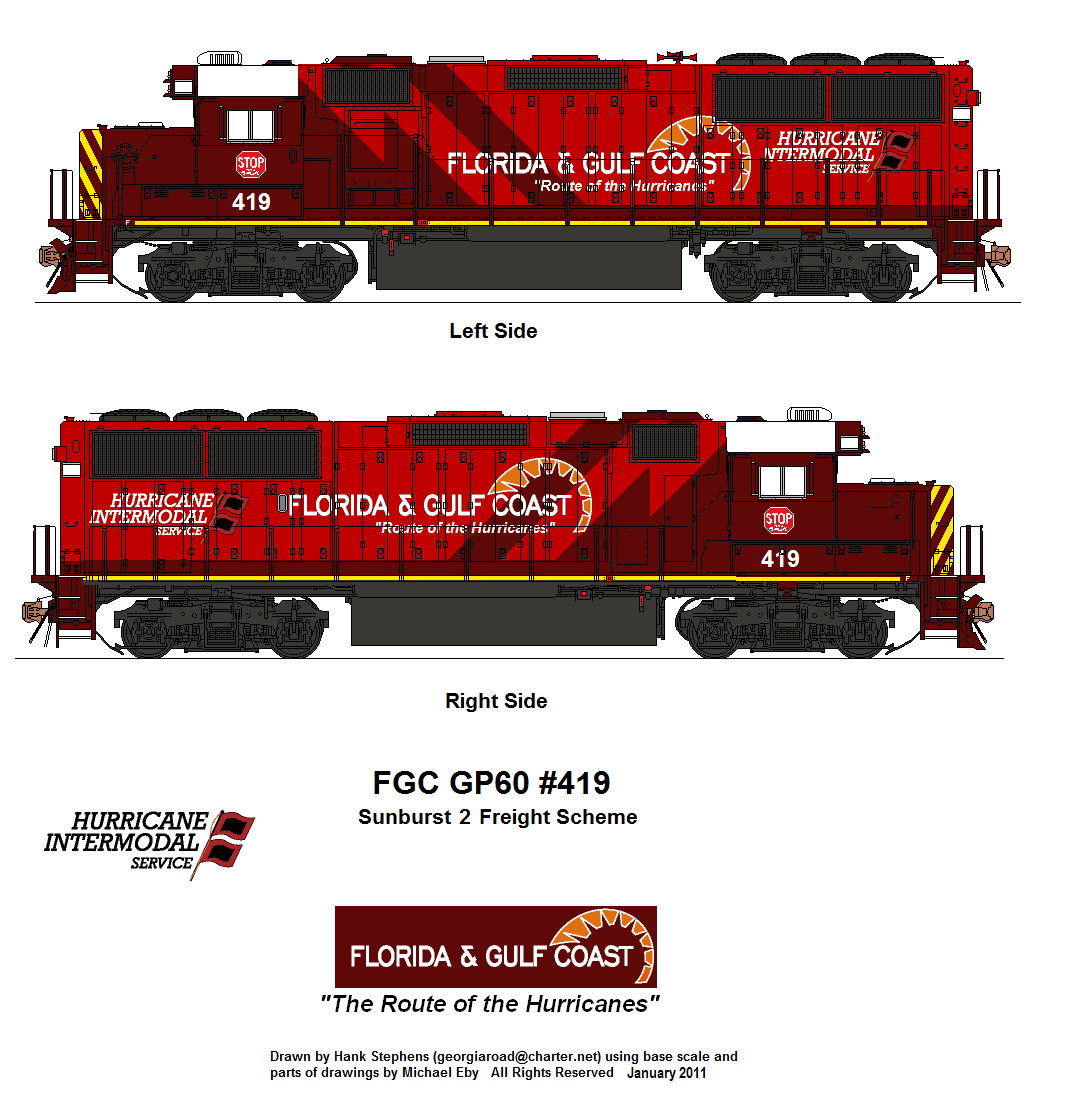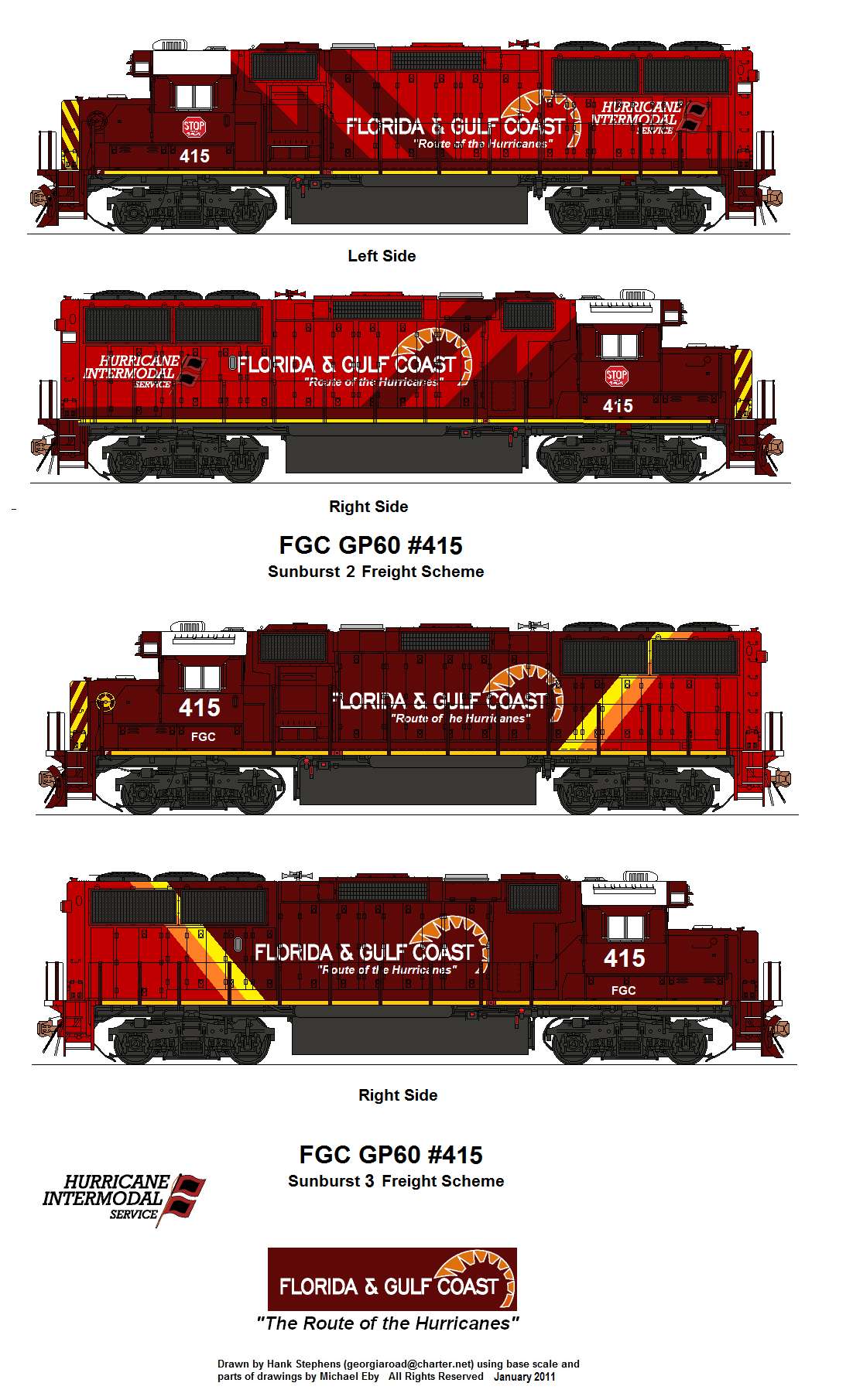| FGC 415 | 2 | Sunburst 3 Standard Scheme | exx-EMDX, ex-CSXT purchased in 2020 for Hurricane Intermodal Services. First units to receive the new FGC Sunburst 3 Paint scheme |