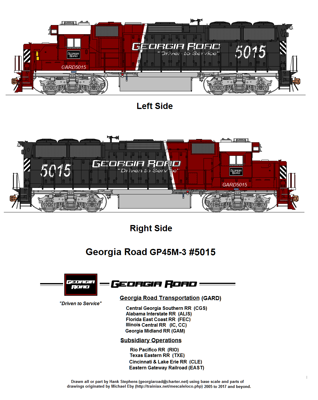 A portion of the more troublesome units were traded to EMD for various rebuilds, including the TGX Program GP65M units. Others were eventually converted to road slugs but the bulk of the units remained out of service in the Stephens Railcar storage lines. This changed in 2105, when Georgia Road decided to task Stephens Railcar with producing a comparable rebuild from the cores to match the highly successful rebuilds of the ex-IC GP40Rs into GP40M-3 units. This time Stephens Railcar came up with the GP45M-3 design, using GP50 cores in the Stephens Railcar inventory, including the last of the former CA&S units that were traded for GP25M rebuilds.