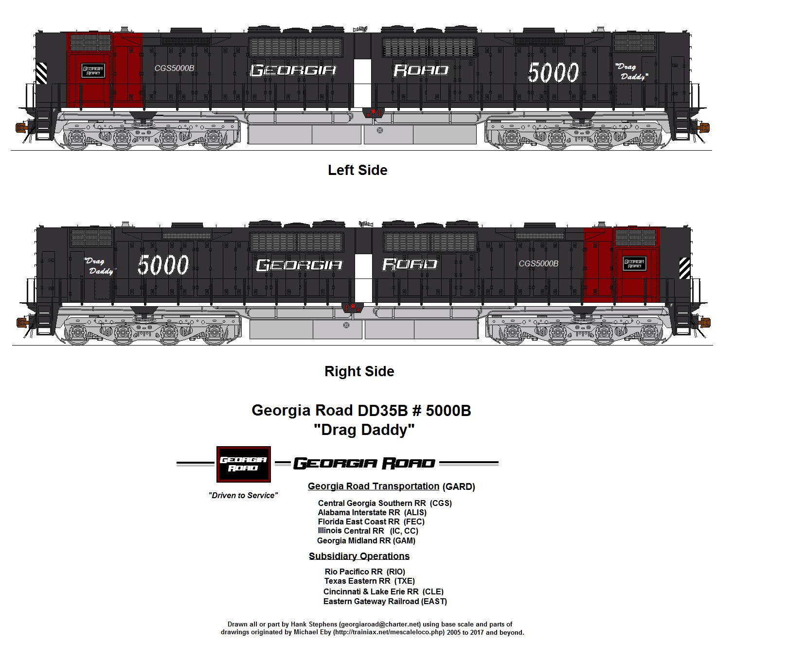 If you want to see it, go to bed early and rise before the sun and set up near downtown Birmingham. If traffic levels lend a hand, 5000 and its flanking lead units will pass by on its way back from Georgia Road’s Leigh Yard to the to the Irondale side of town to be tucked away in a sea of Georgia Road power at the sprawling Fred M. Dale classification yard. There it sleeps until the sunset heralds the next call to action. It probably wouldn’t hurt to check to make sure that it’s not on vacation in adjoining terminals in Atlanta or Memphis. If that’s the case– just be patient because 5000 won’t stay gone for long. Any other time it works in the Birmingham Terminal as permanent yard transfer power in the cover of darkness. There are no plans to change the status of this unit, the last surviving DD35B, former EMD 35 series demonstrator and a daily operating member of the Birmingham Terminal Yard and Transfer roster.