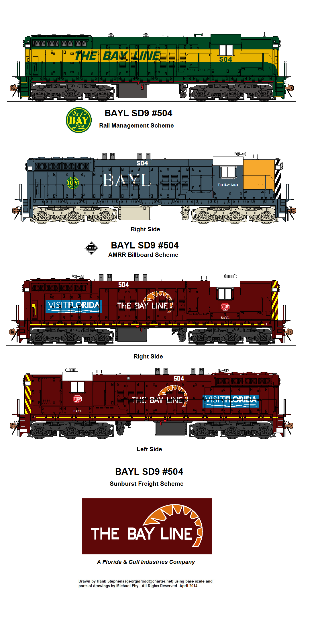 | BAYL | 2 | Various Schemes | ex-ASAB, transferred to BAYL after railroad sold by Continental Container to Rail Management in early 2000s; 504 and 505 damaged in derailment in Youngstown, FL in 1978; 504 repaired but 505 stored HBO for a number of years; both rebuilt with 645E block rated at 2000hp; In service. |