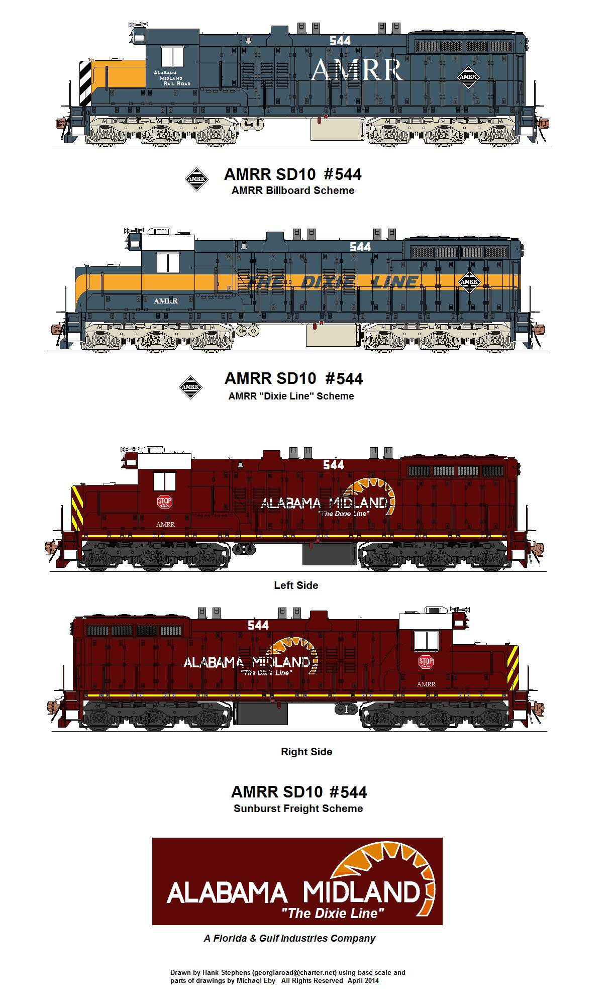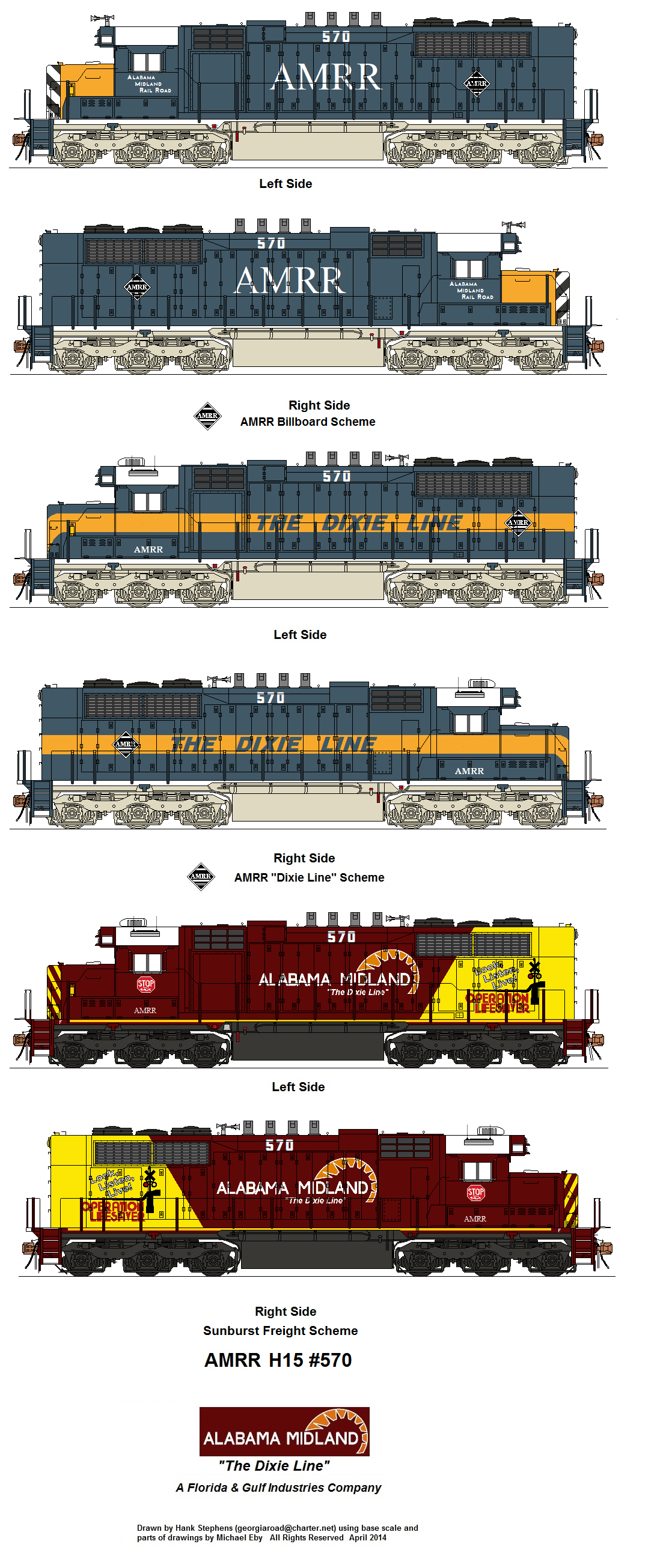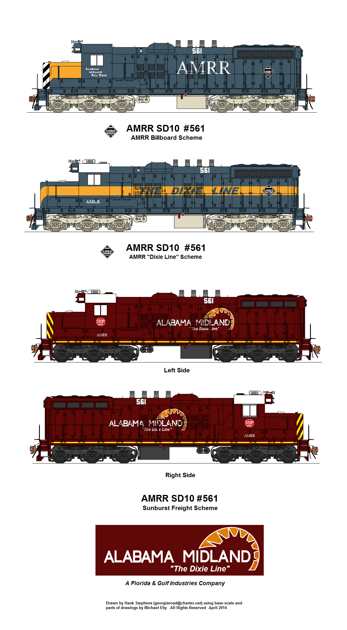 | GC GSWR BSRR | 5 | Various Schemes | exx-SAL ex CSXT rebuilds for heavy yard switching; SCL deturboed SD35 and SD35P units for use at Waycross, GA hump yard; AMRR bought units after CSX retired them and upgraded to 645E block rated at 2000hp; Assigned use on AMRR, GSWR and AGLF light trackage; In service. |