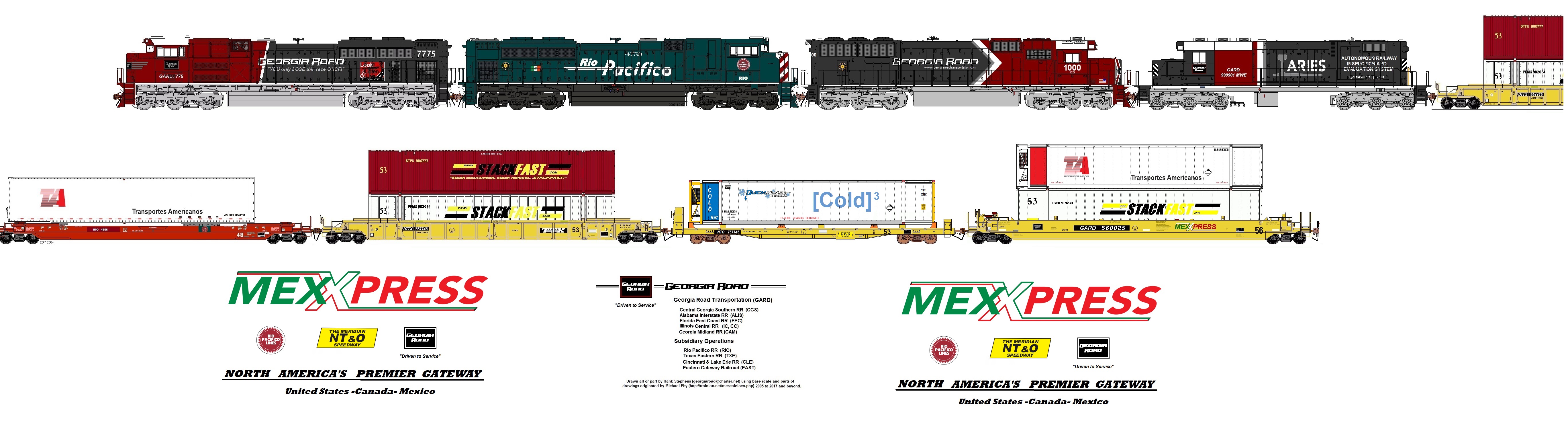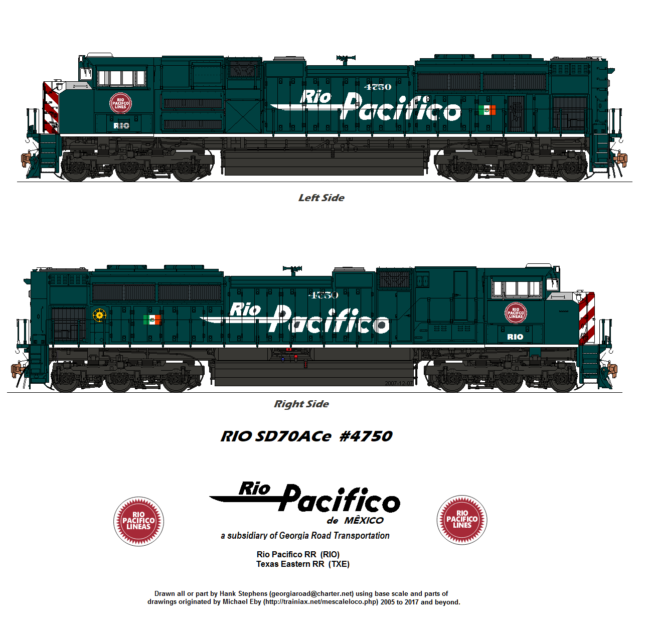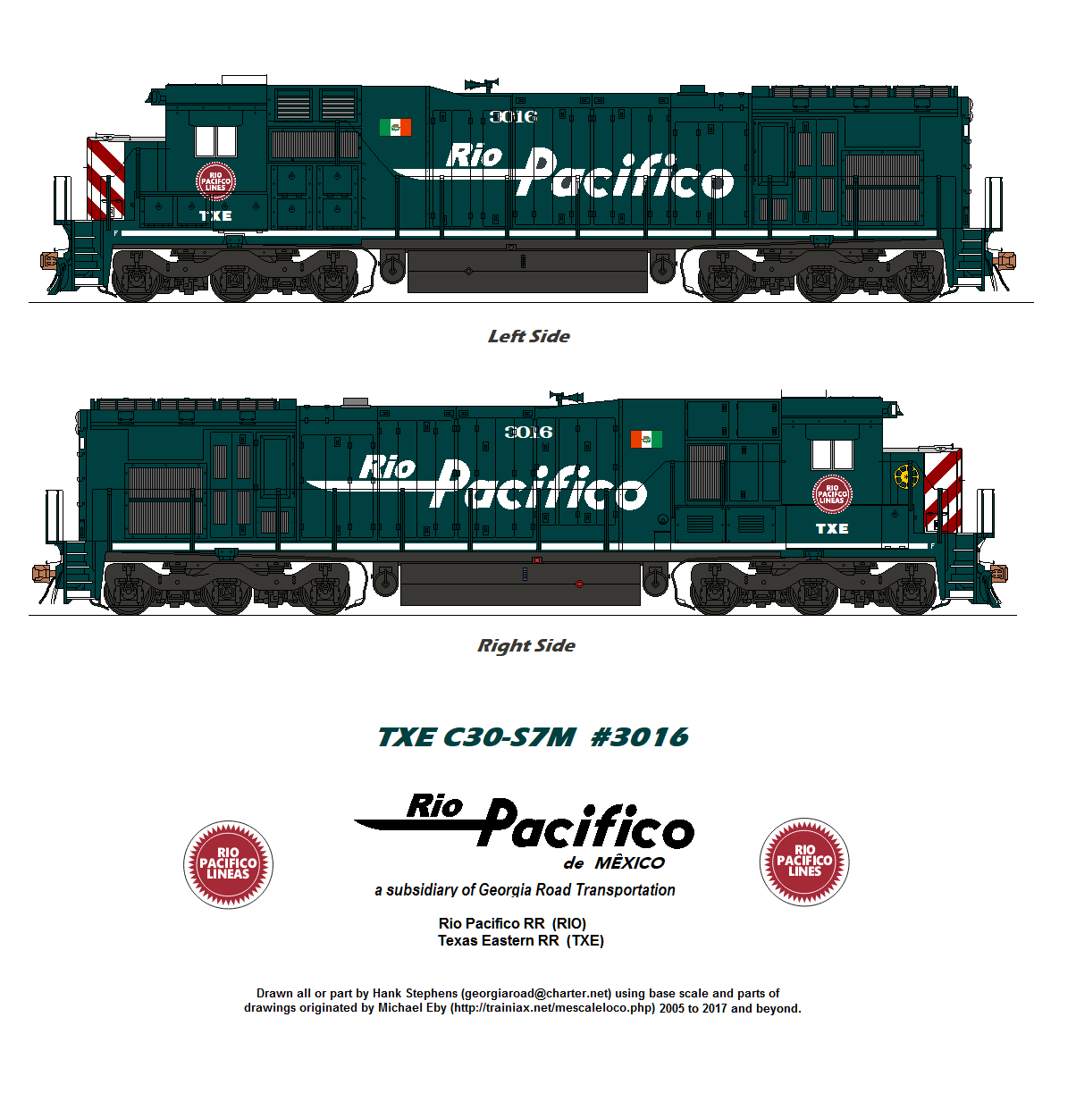 ABOUT THE RIO PACIFICO AND TEXAS EASTERN OVERVIEW SYSTEM MAP MEXXPRESS SERVICE EAST SD40-2 (ex UP Snoot) 3013 modeled by Ed Lewis. ROSTER RIO SD70ACe #4753 as modeled by Ed Lewis.