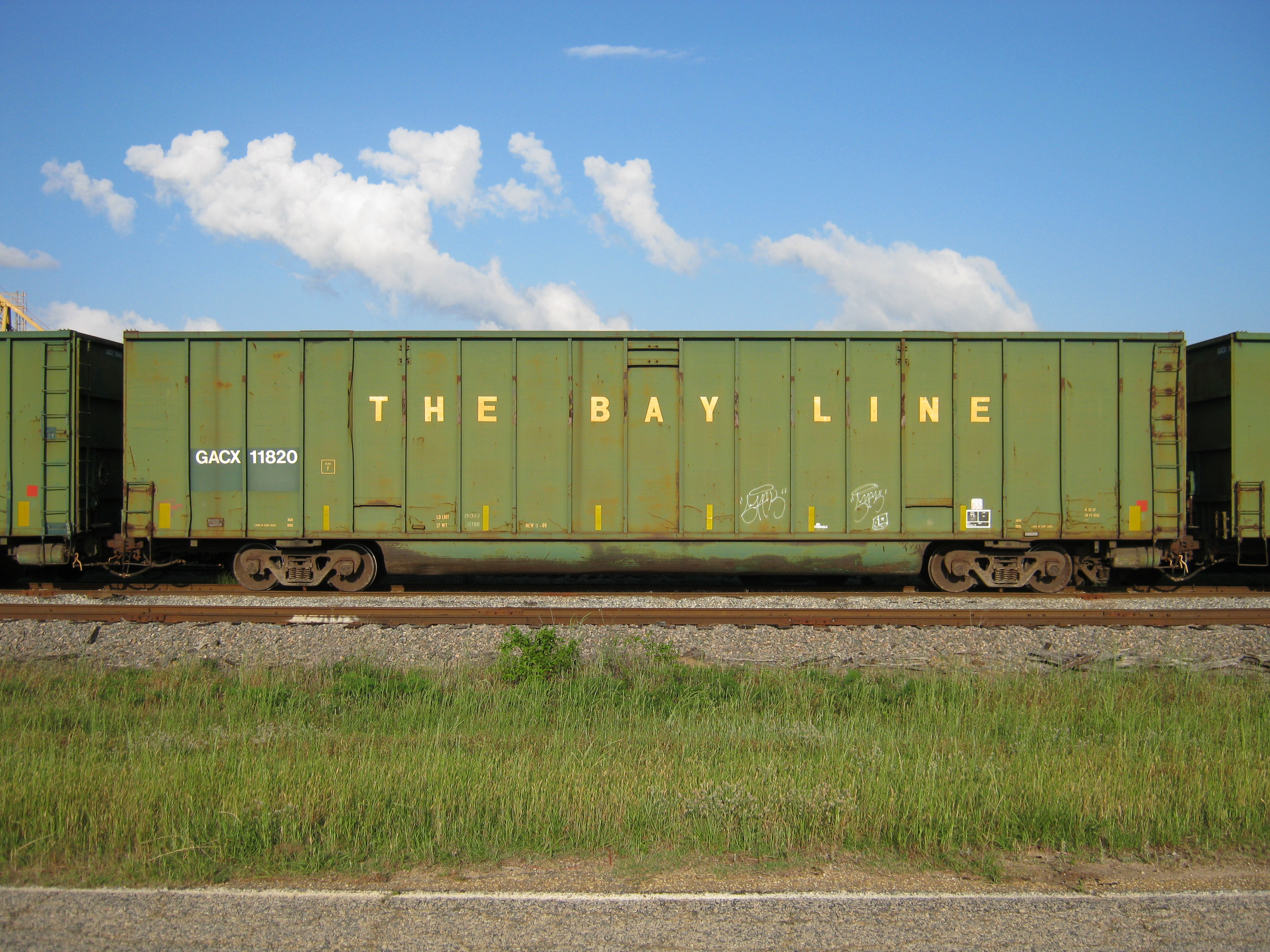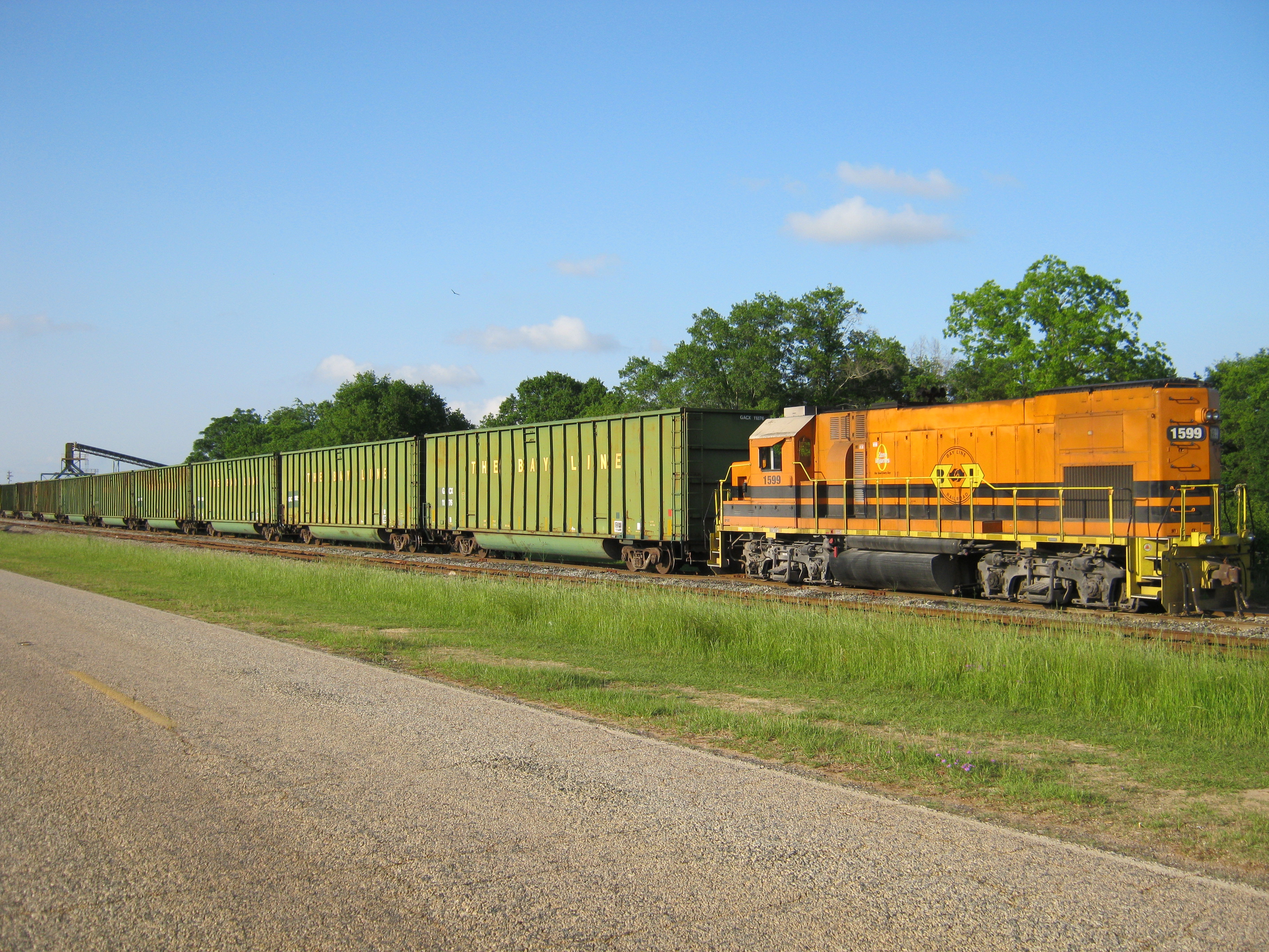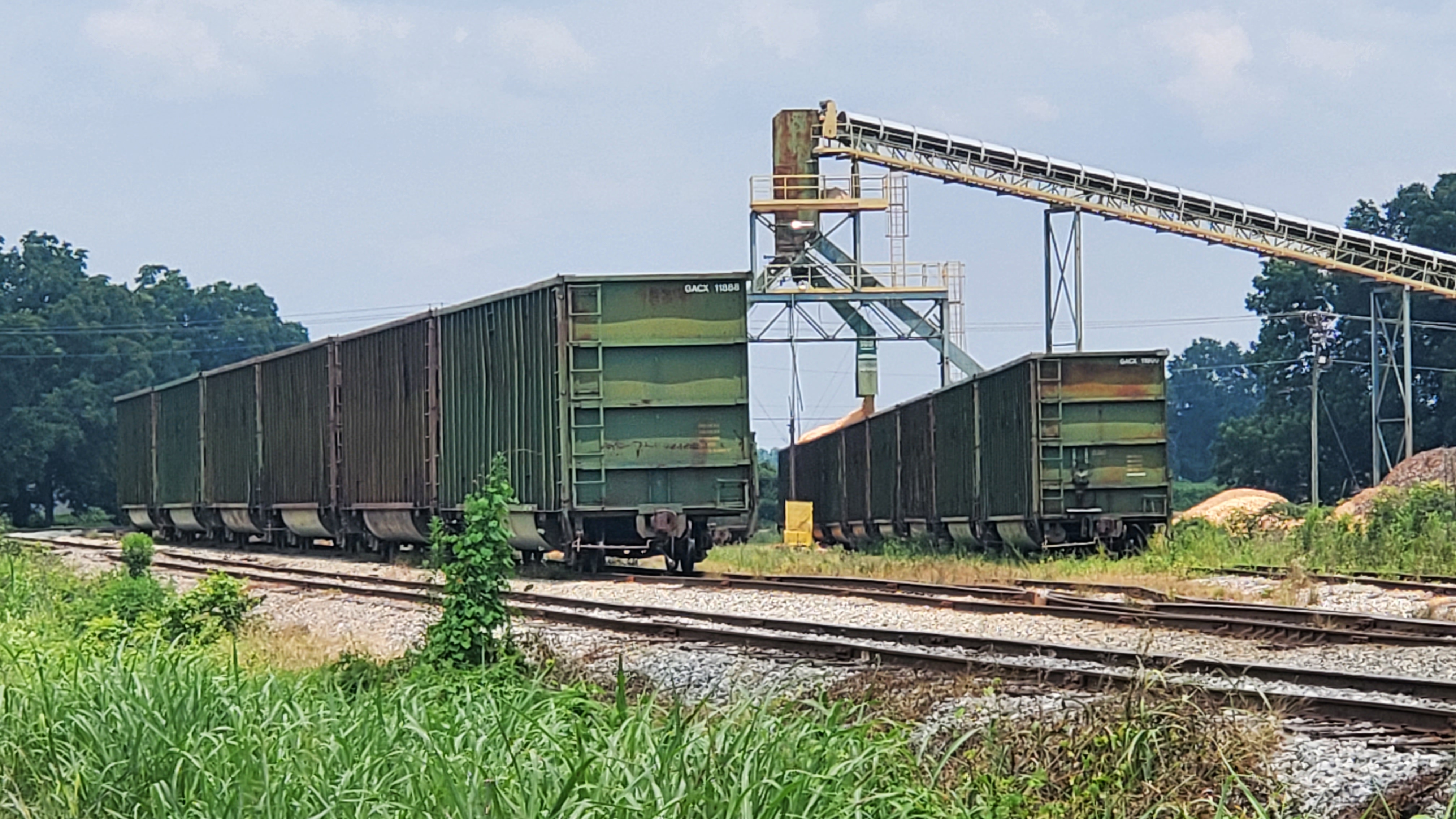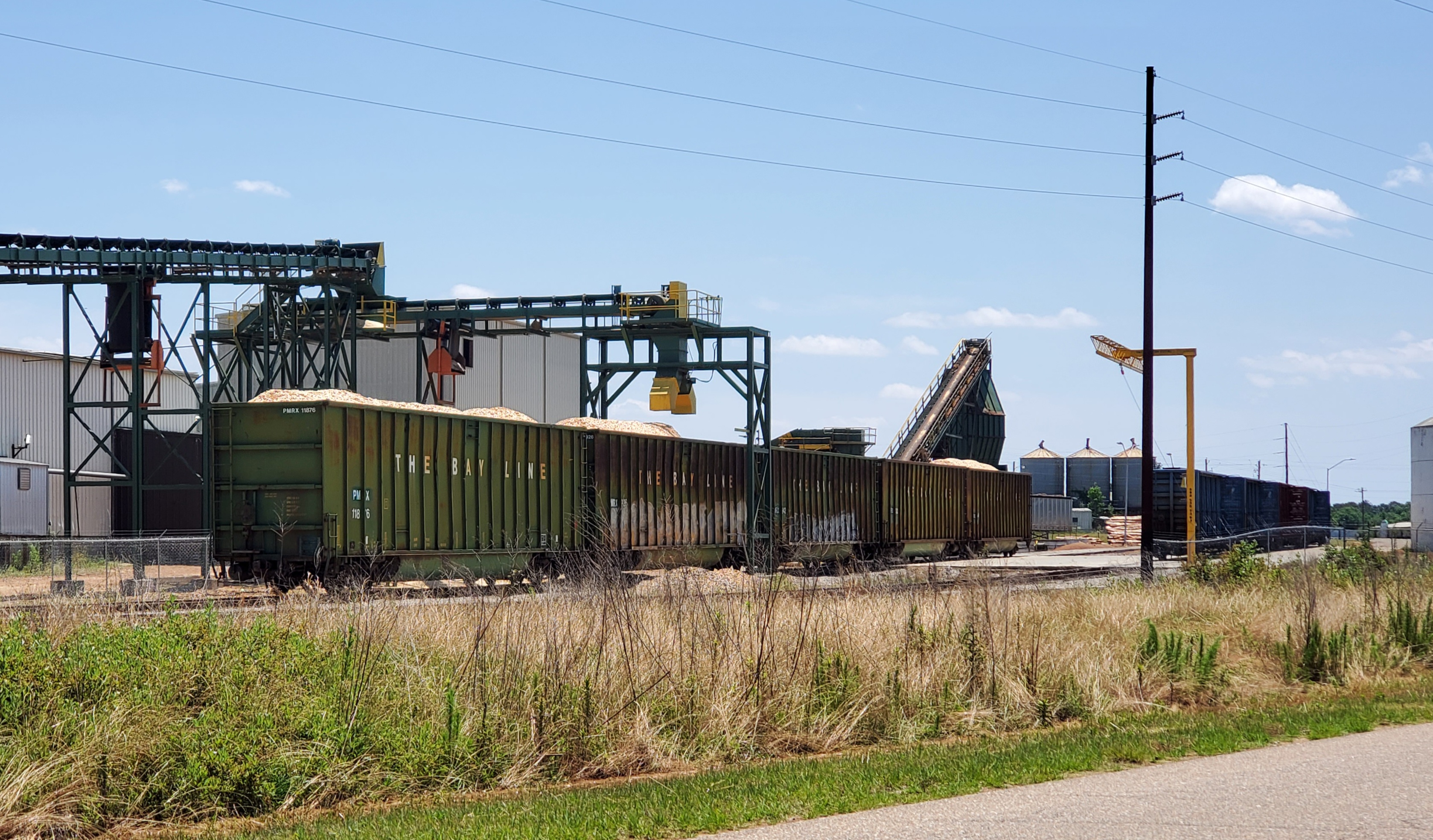 The Deep South has seen a renaissance of sorts in new sawmill operations as high demand and record profit margins spurred stagnant dimensional lumber production to expand. Abbeville-based Great Southern Wood built a brand new saw mill at Abbeville to supply treated and white lumber during the Pandemic of 2020-2022. While still in operation, production has dropped with demand in 2023. It will remain and likely replace older mills that lack modern efficiencies if the market fails to recover. GWI -owned BAYL services the mill. Woodchips went to the CCA papermill at Panama City, FL until its closure. Now chip cars are leased, and appear in irregular cycles as woodchips have to be sold on contract. The BAYL captive fleet was sold to GATX Leasing after the GWI takeover as seen on the right in the picture. These cars were re-sold again when the CCA mill closed and left the property.