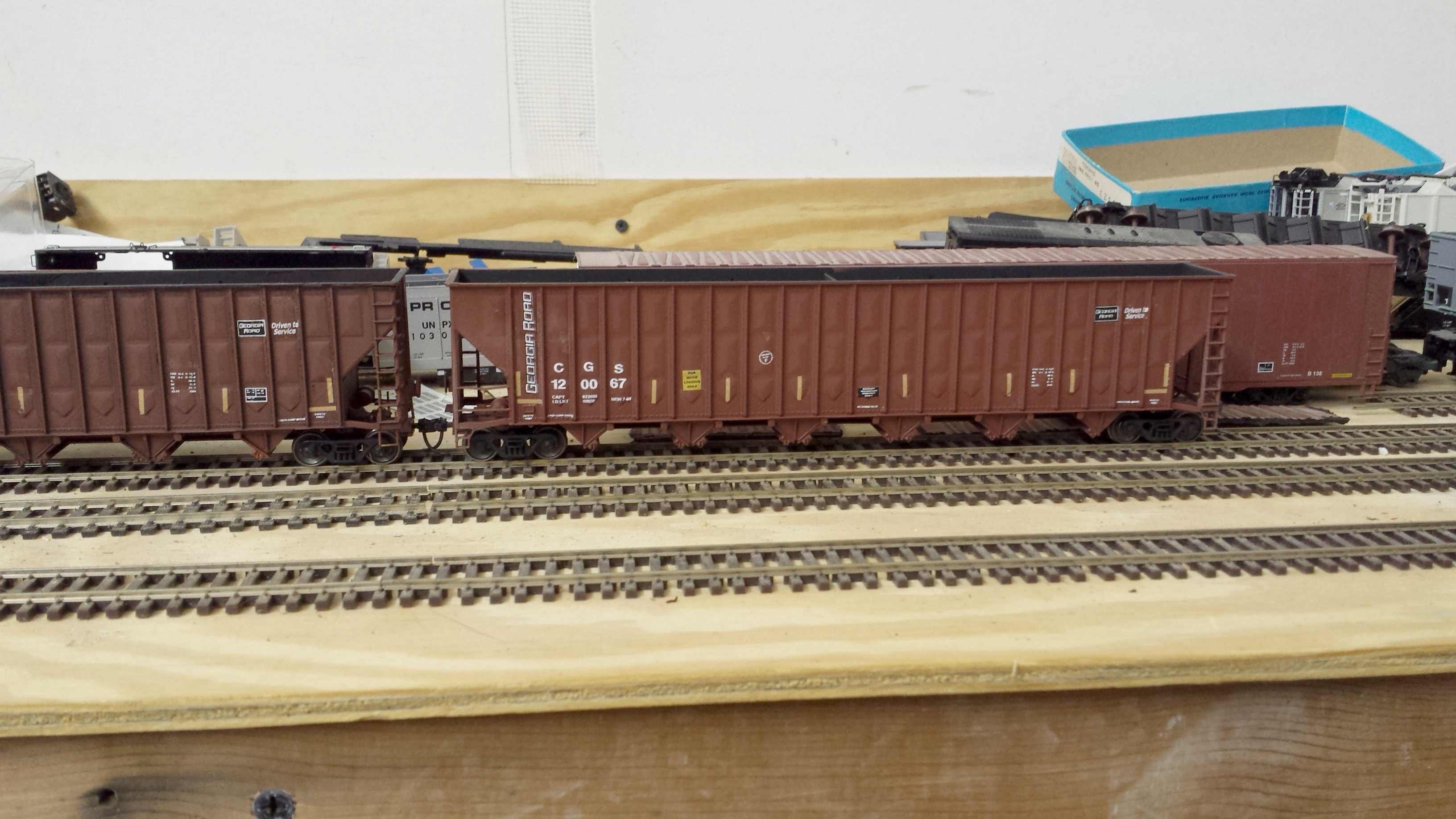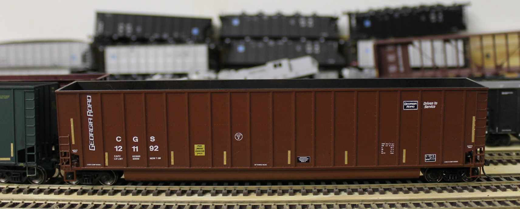 The Georgia Road increased its fleet in the 1990s and again in 2023 with FreightCar America (formerly Johnstown America) 7800 cuft rotary dump cars.—LBF/Hubert’s model with replacement trucks, couplers and reweighted