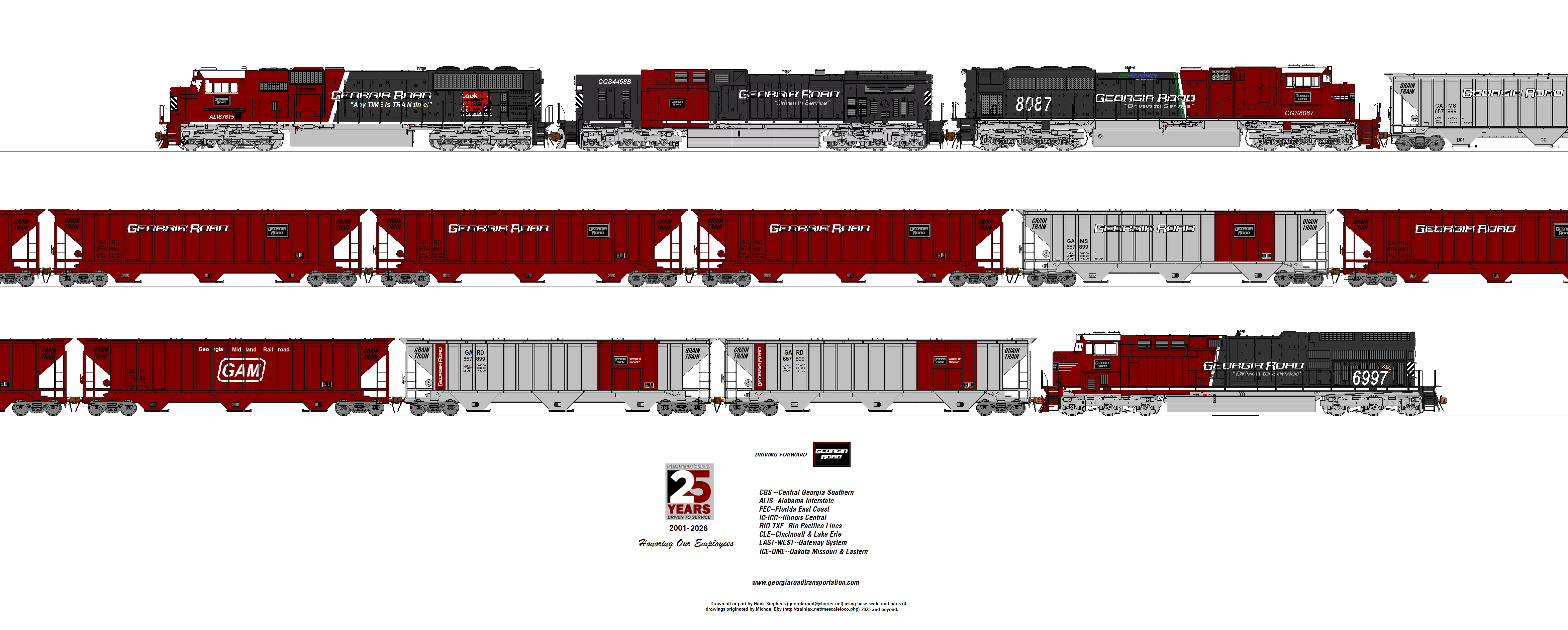 The following is a roster of current and pending freight cars owned and leased by Georgia Road Transportation. This roster contains REVENUE AVAILABLE cars only. Please refer to Roster Main Menu to select Intermodal, Company Service/Maintenance of Way or Passenger/OCS equipment.