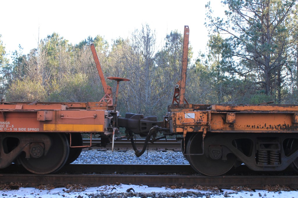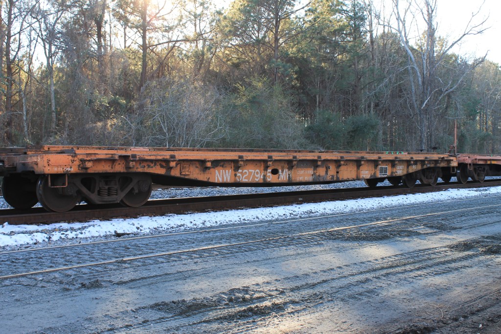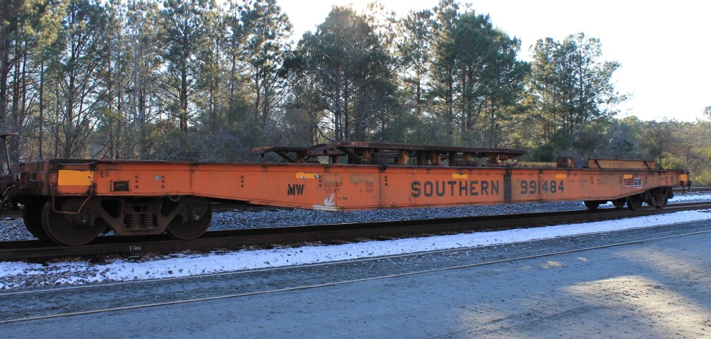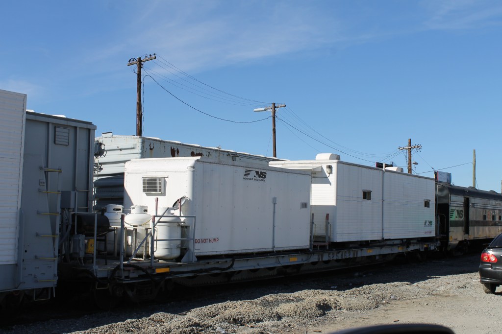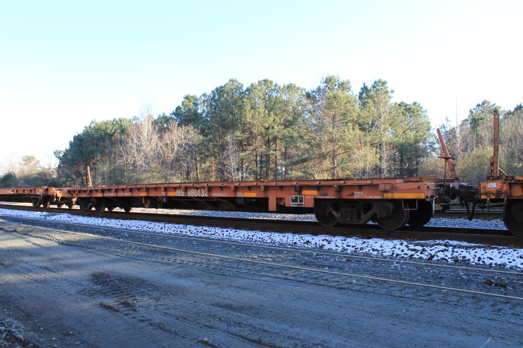 Gang transport flatcars on NS were a distinguished collection of cars dating all the way back to the 1920s. These cars were rebuilt multiple times to modern standards of the day, but since they never left home rails, remained in service far beyond the forty-year lifespan requirement of the FRA for interchangeable equipment. Cars ranged from pre -WW2 riveted 40ft flat cars to a nearly brand-new Kershaw Scorpion ramp car. Southern and later Norfolk Southern knew how to squeeze every penny of use in its operations and equipment. It saw little need to replace old cars that still labored reliably for the program and maintenance gangs.
