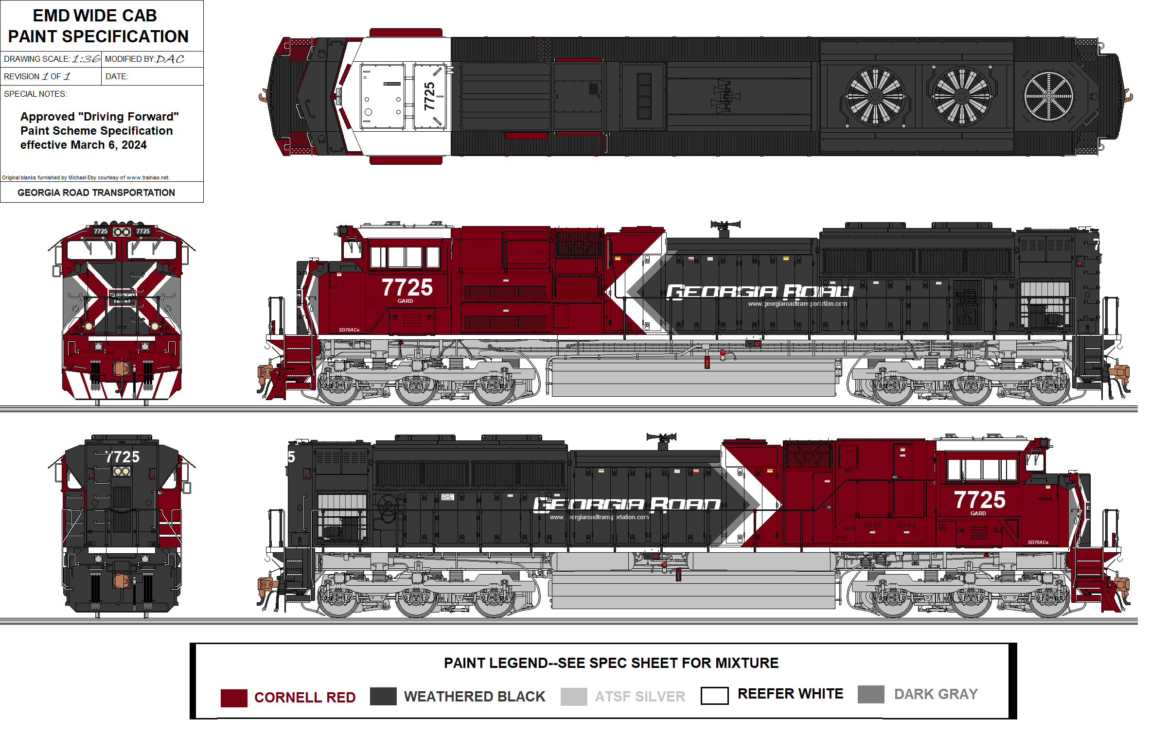 Note—special thanks to Damon Curtis for “Driving Forward” locomotive paint specification drawing