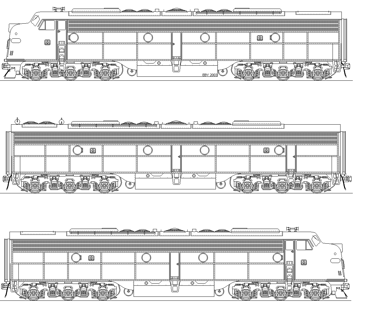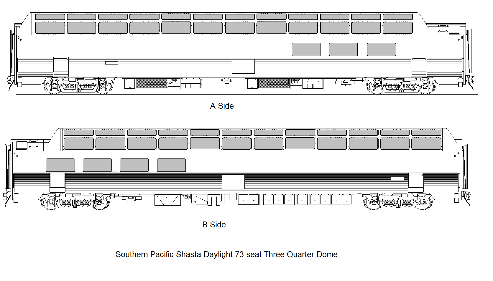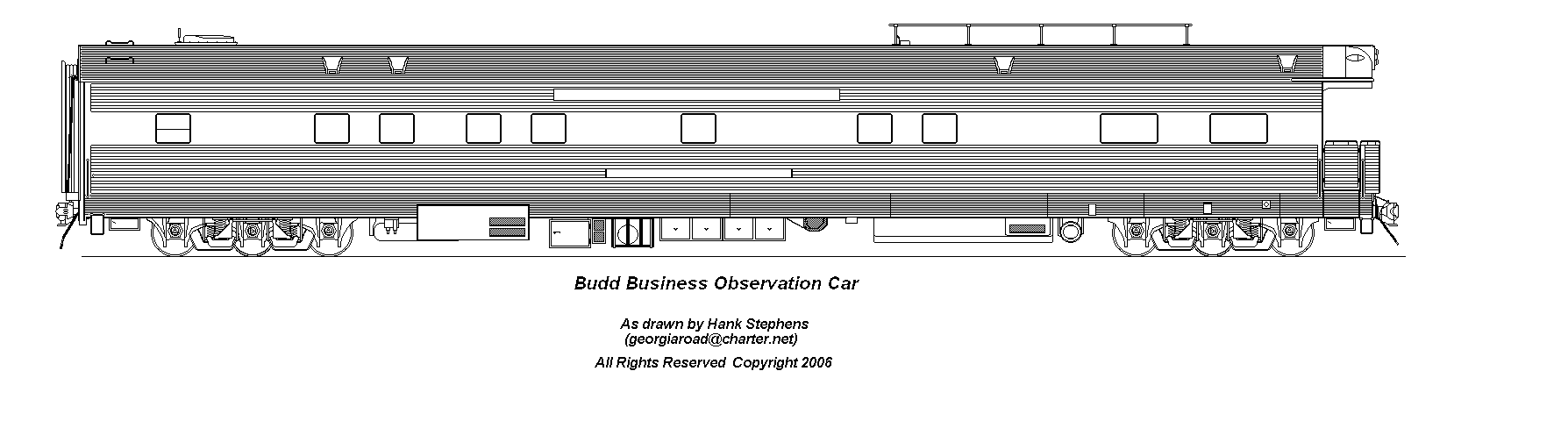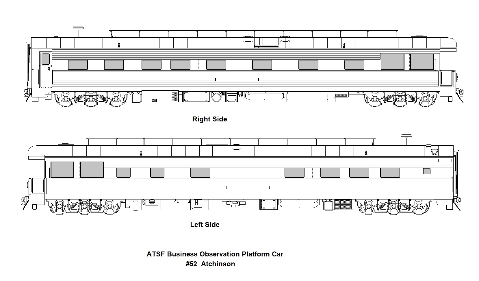 ATSF Budd Business Car AtchisonBudd ATSF baggage CarATSF William B Strong Theatre CarATSF Budd Business Car Santa FeBudd Baggage-Dorm NYC typeBudd 10-8 Executive SleeperP-S Articulated Kitchen/Diner/Lounge Freelanced based on SP prototypeBudd Hi-Level Chair Car (El Capitan)Budd Hi-Level Diner (El Capitan)Budd Hi-Level Lounge (El Capitan)Budd Hi-Level Step-Down Dormitory Chair Car (El Capitan)Budd Business Observation CarATSF Transition Dormitory Lounge (El Capitan)Budd Dormitory Lounge Car( NYC version)EMD E9A-E9B(HEP) Business Train ConfigurationEMD SDP40Fwith HEP UpgradeEMD SDP40F as built AMTK versionGE P30CH AMTK versionEMD U30CG ATSF versionBudd Great Dome Observation Car ATSF VersionBudd Baggare Dorm CarBudd Pleasure Dome ATSF version Super ChiefP-S Business Observation Car MP versionSP Daylight 3/4 Dome